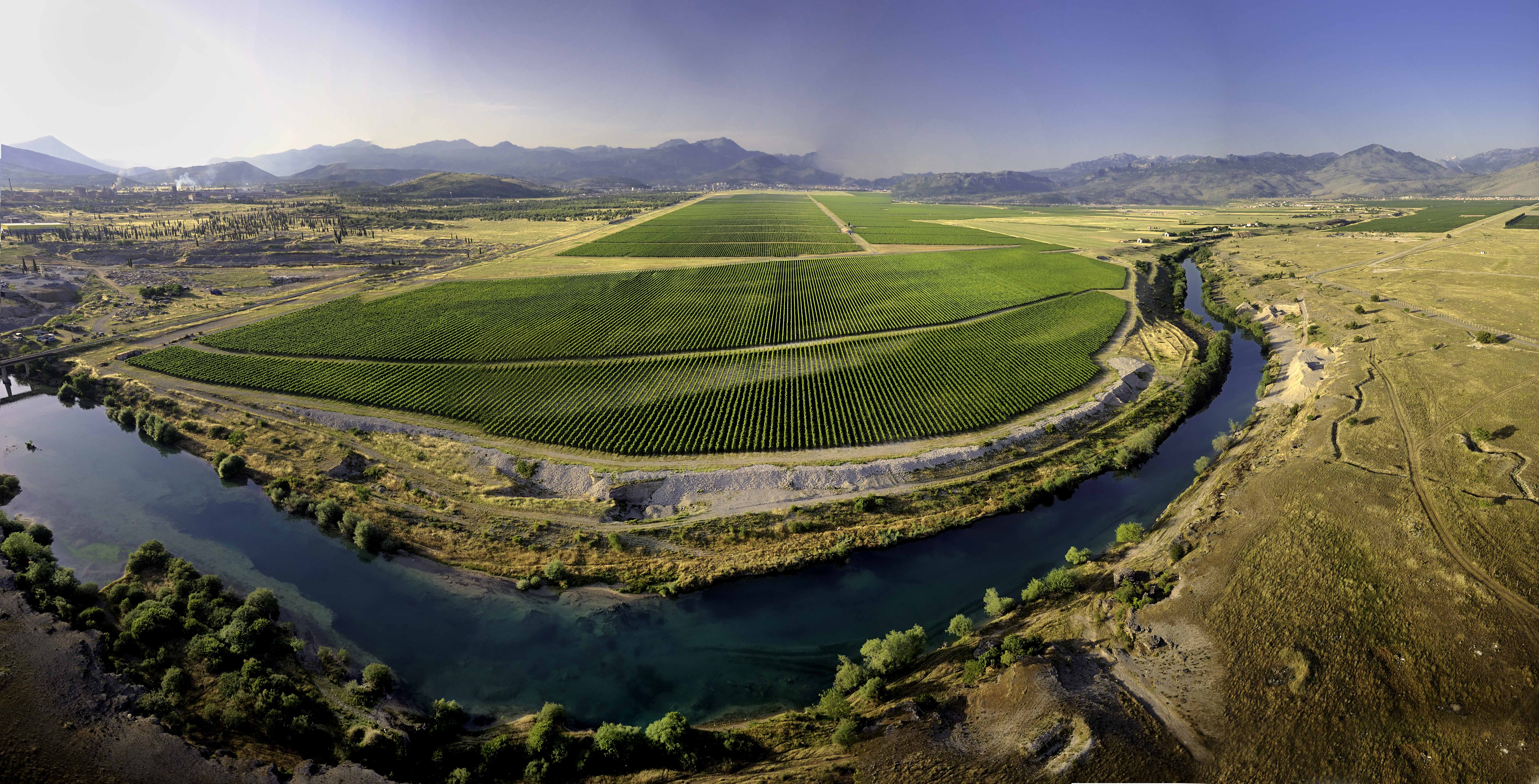 Ćemovsko polje is the largest vineyard in Europe, covering an area of 2310 hectares with over 11 million grape vines planted. These vineyards are located approximately thirty kilometers from the Adriatic sea, next to Lake Skadar. The vineyards are bordered by the riverbed of the “lost river” Cijevna, on one side. Searching for its way to the Morača river and the sea, the river Cijevna found its way through the rocks, making a picturesque small canyon. In the riverbed of the river Cijevna, a specific section of the rootstock where Plantaze’s vineyards are situated is comprised of layers of different types of stones. The microclimate of the Ćemovsko polje region is largely determined by its proximity to the Adriatic Sea. The vineyard is located on a plateau, with an altitude of only 45 to 70 meters above sea level and is bordered by a range of bare, limestone hills. This karst valley is marked by extremely hot and dry summers and winters, only slightly cooler than coastal areas.