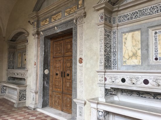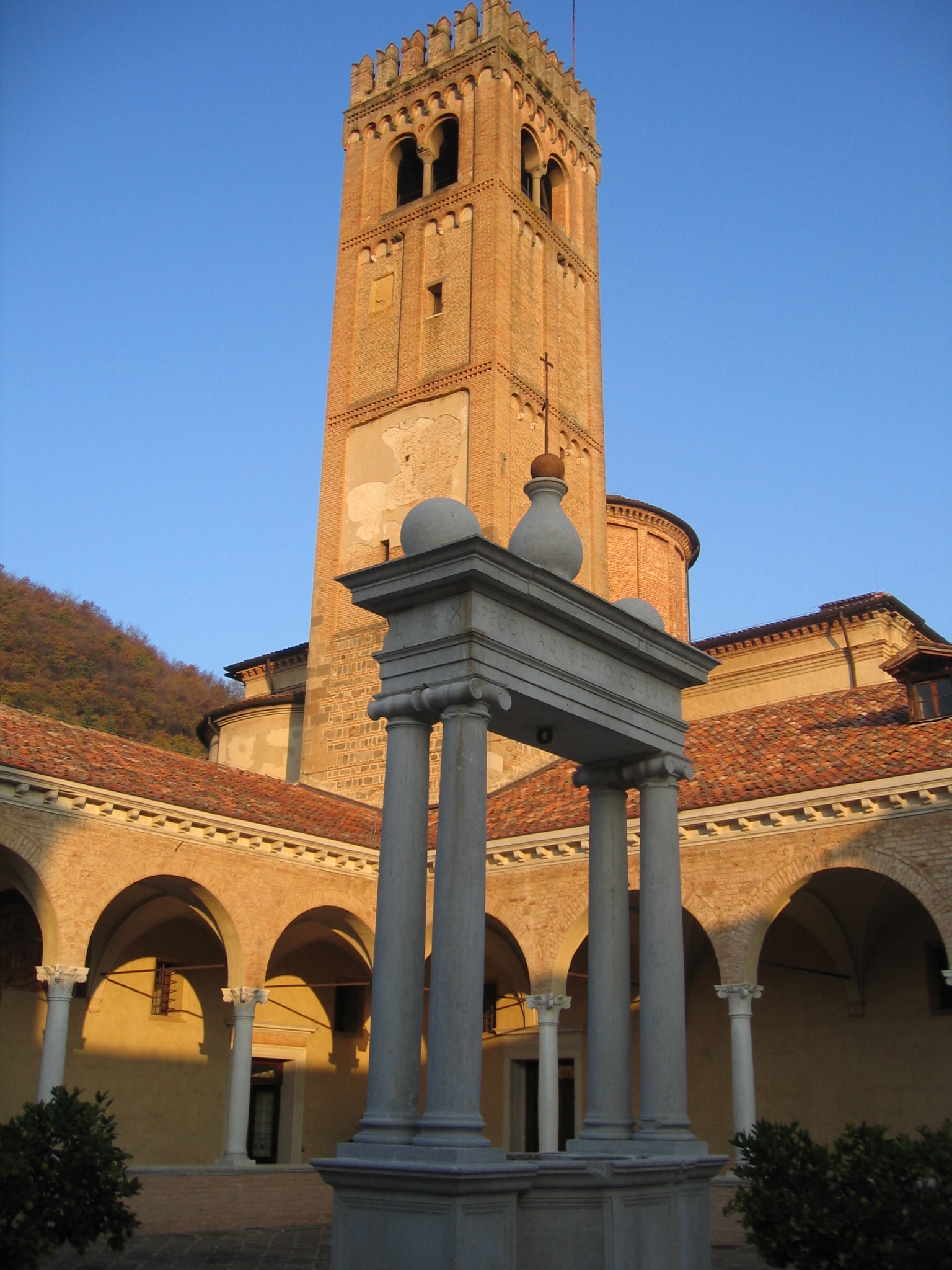 The Abbey of Praglia lies at the foot of the Euganean Hills, approximately 12 km from Padua. The monastery was founded in the year 1080. The abbey complex today is the result of a great reconstruction carried out between the second half of the fifteenth and the first half of the sixteenth century. Today, only the bell tower remains of the original medieval structure. The basilica church, dedicated to the Assumption of Mary (Santa Maria dell’Assunta), was designed in 1490 by Tullio Lombardo. Construction of the nave was completed in 1548, and of the principal door and the cupola in 1550. The abbey has works by many prominent late-Renaissance painters of Veneto.