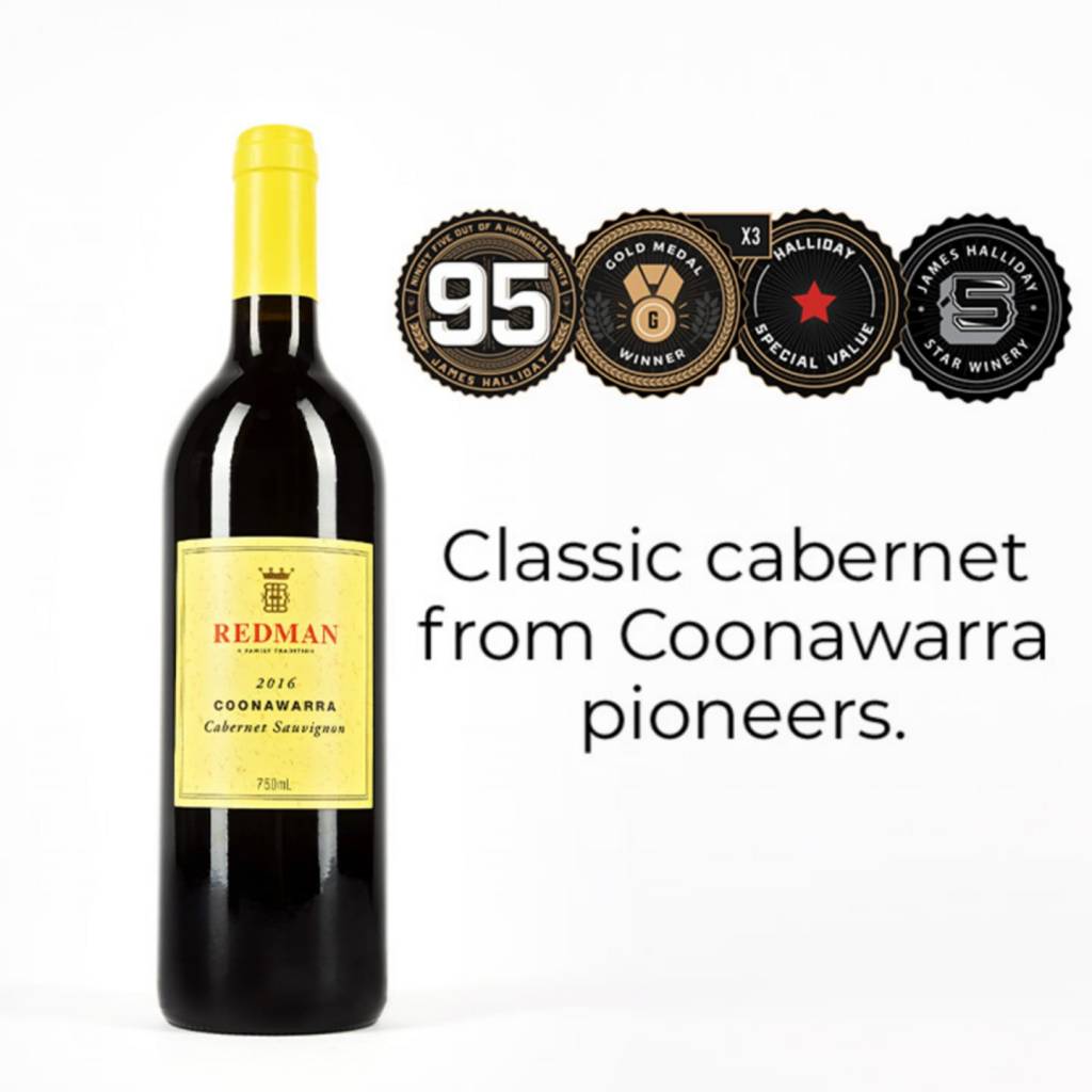 Redman Cabernet Sauvignon is made from grapes grown on vines that are over forty years old, and carefully hand pruned, on the Redman family vineyards in the heart of Coonawarra.
